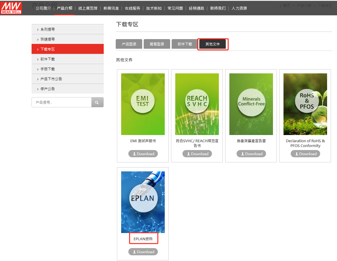 明緯電源產(chǎn)品的Eplan軟件EDZ庫(kù)文件下載渠道: