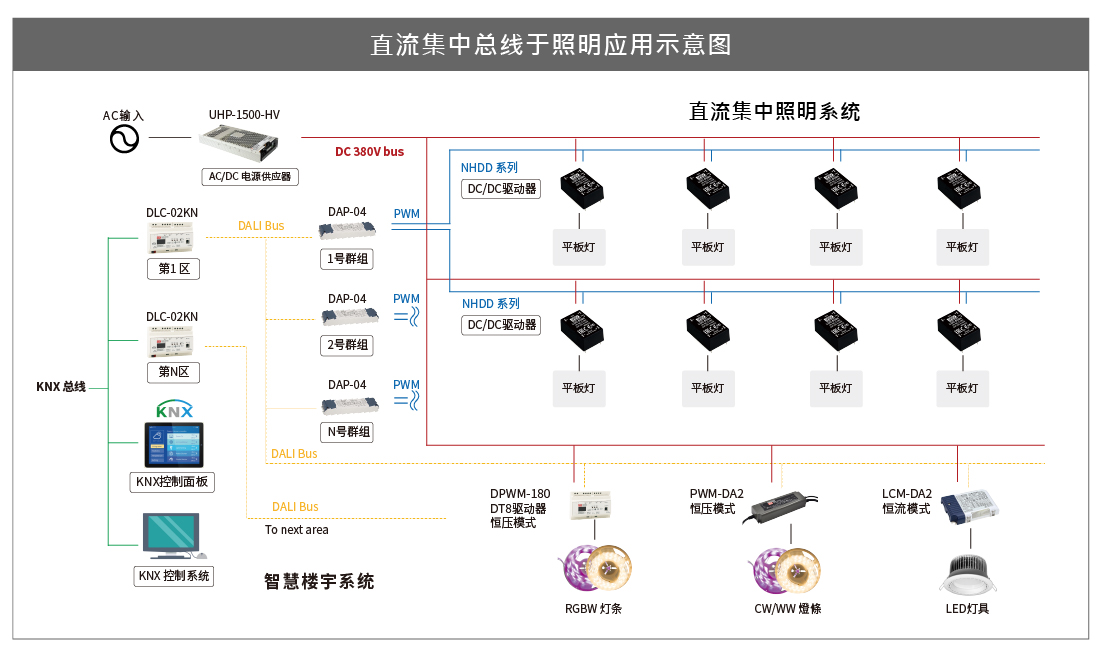 憑借超過35年的電源設(shè)計(jì)和制造經(jīng)驗(yàn),我們定義新的直流集中供電和直流照明應(yīng)用方式,可提供機(jī)殼型與DC/DC LED驅(qū)動(dòng)器的完整解決方案。此外,直流集中供電可輕松整合到再生能源系統(tǒng)中,以降低電源轉(zhuǎn)換損失及結(jié)合儲(chǔ)能系統(tǒng)(ESS)的使用方式。如此才能達(dá)到一個(gè)完整的“直流世界”應(yīng)用,請參考下圖。