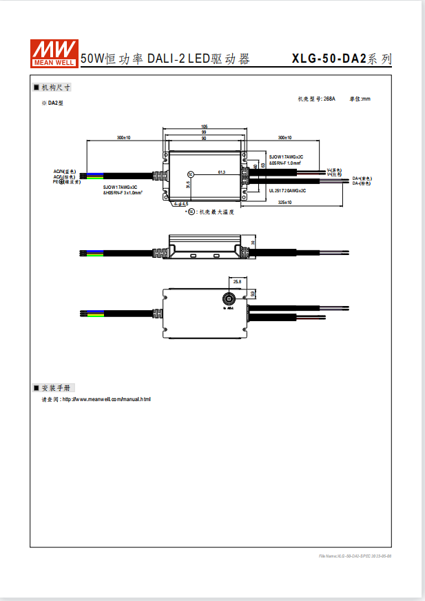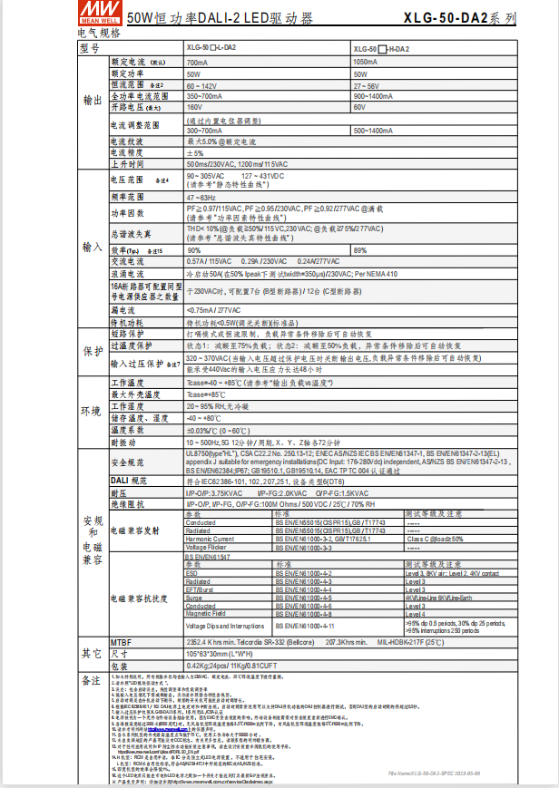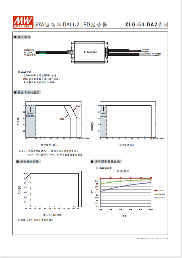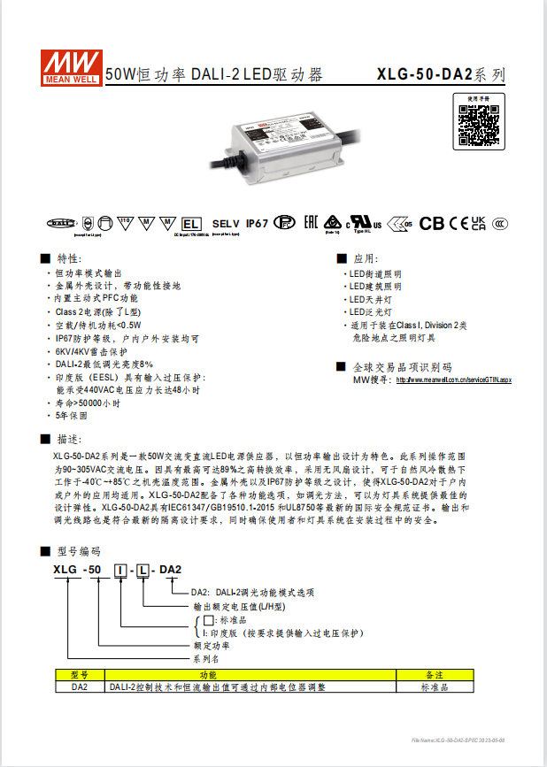瓦數: 20W~320W 功能特性 寬電壓輸入范圍100~305VAC(XLG-20為90~305VAC)