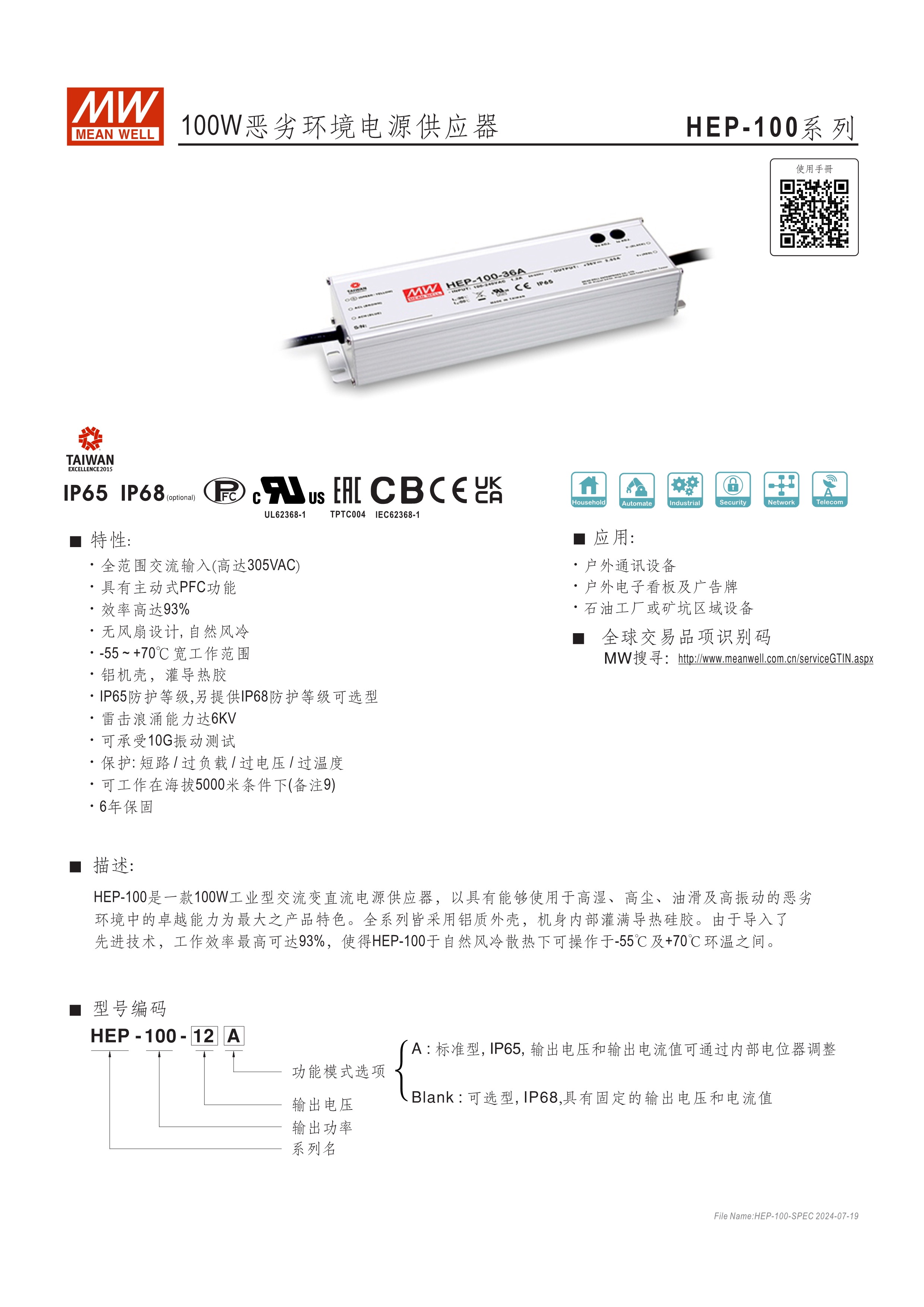 無風(fēng)扇設(shè)計 具96%超高效率 工作溫度范圍寬達(dá)-55~+70℃ 采用金屬外殼、IP65設(shè)計(另有IP68選購機(jī)型),可承受10G震動測試 操作海拔高度可達(dá)5000公尺 內(nèi)建CANBus、PMBus,可選MODBus (僅1000W和2300W可提供) 適用于高溫/低溫、高塵、高濕、高震動、高鹽分的戶外或嚴(yán)苛環(huán)境 6年保固期