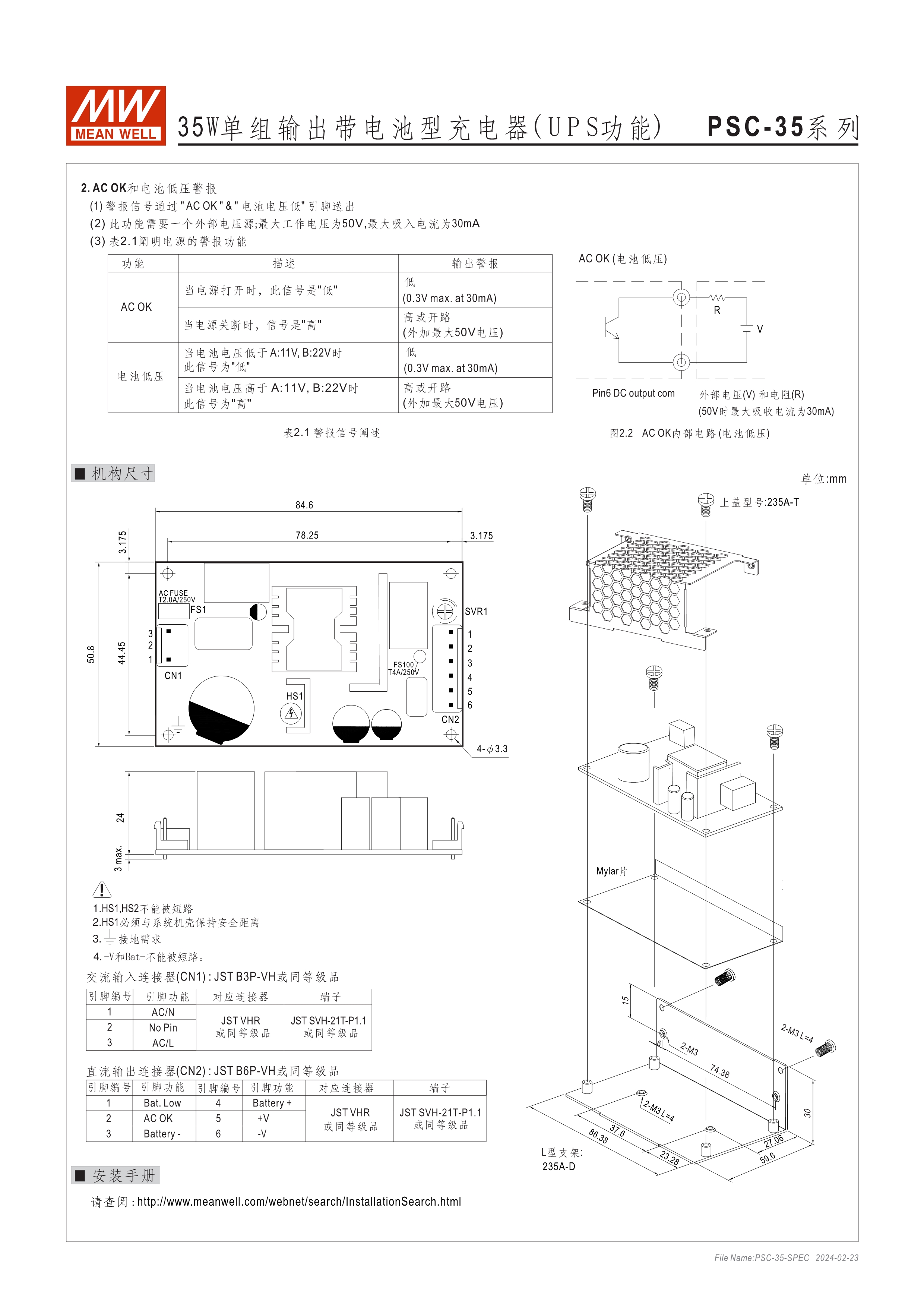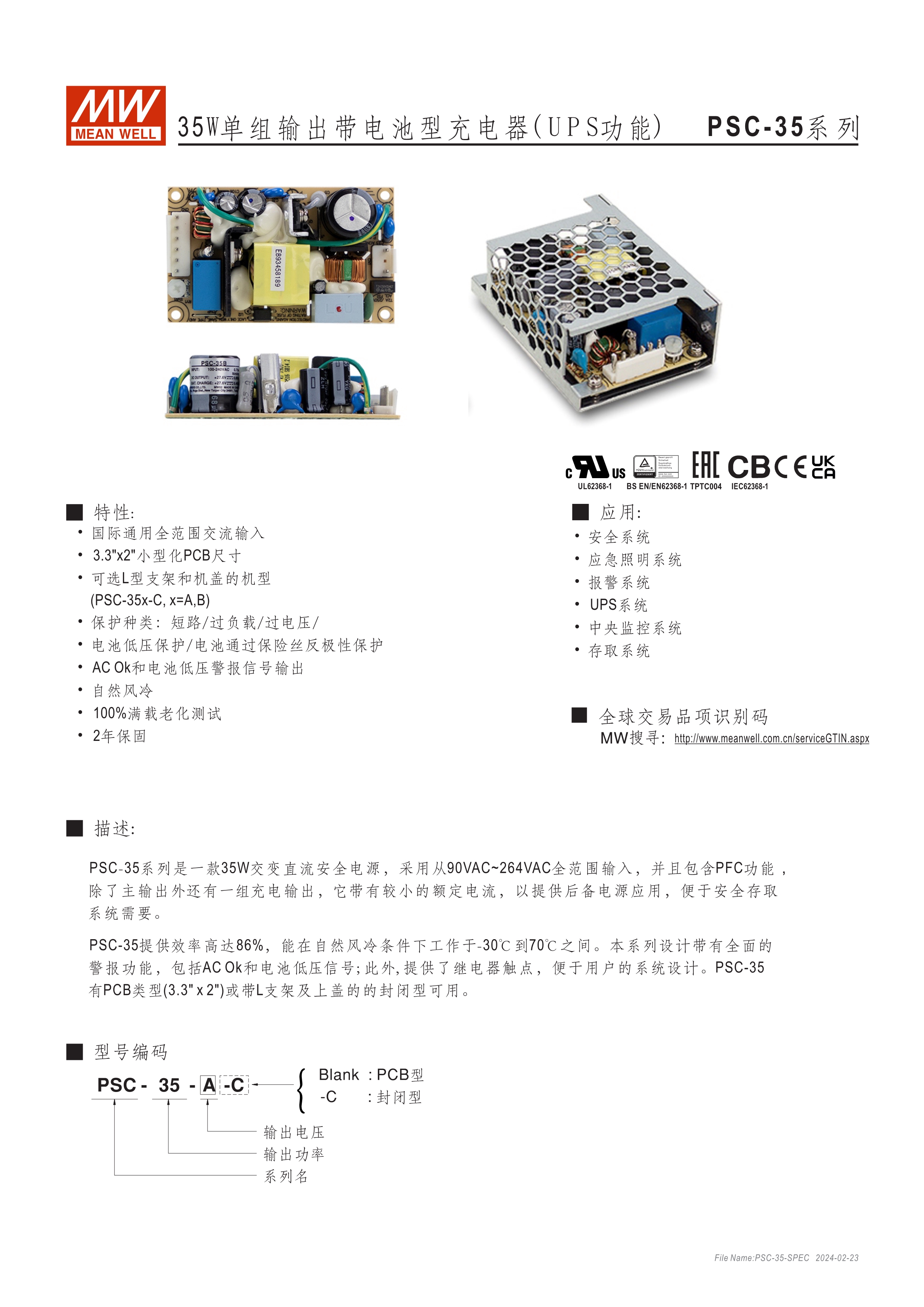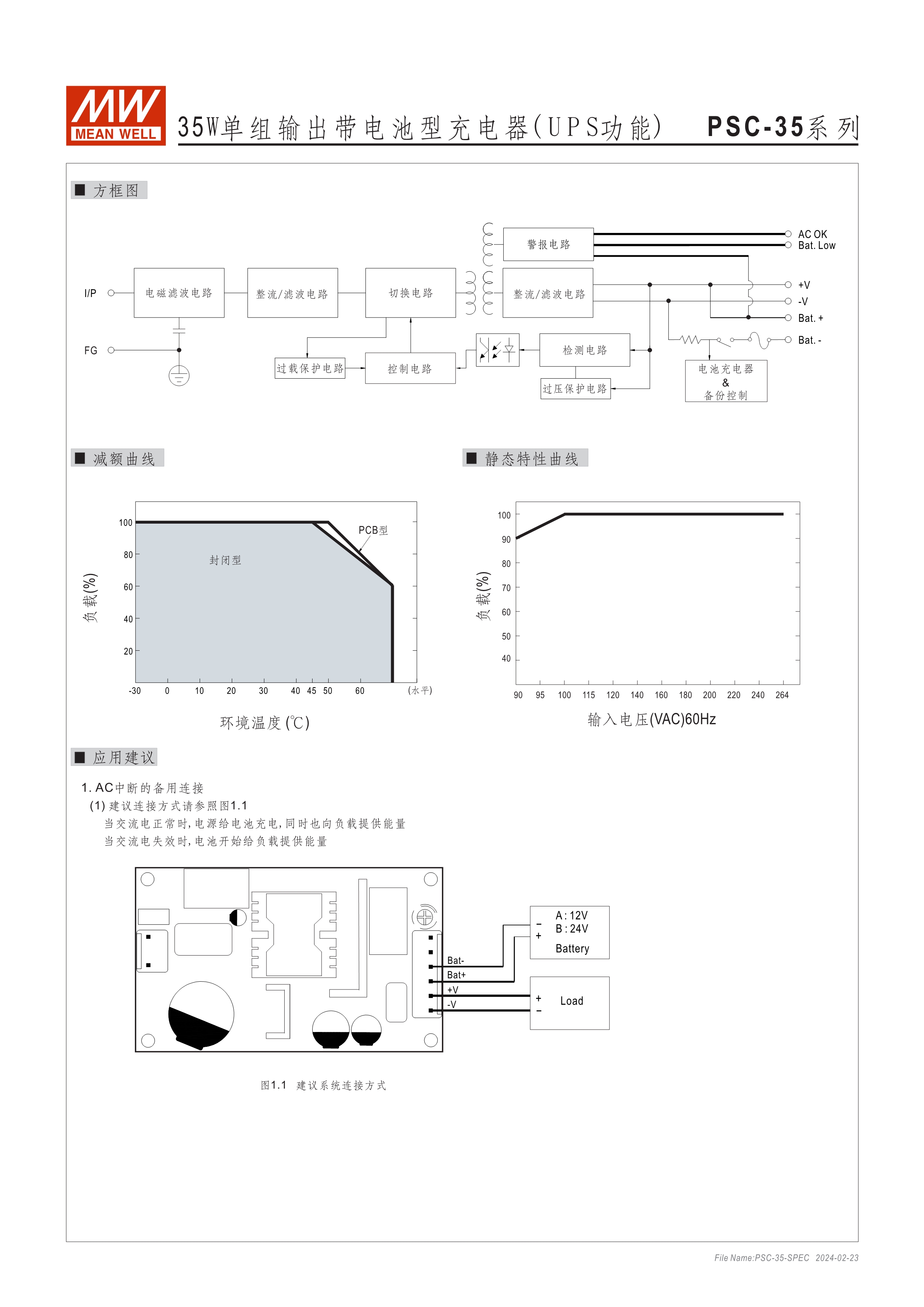 具UPS 功能(需外接電池) 適合用于安全監(jiān)控設(shè)備或各式電池備援系統(tǒng) PSC-160內(nèi)建主動式功率因子矯正功能(active PFC) 亦可提供機殼型
