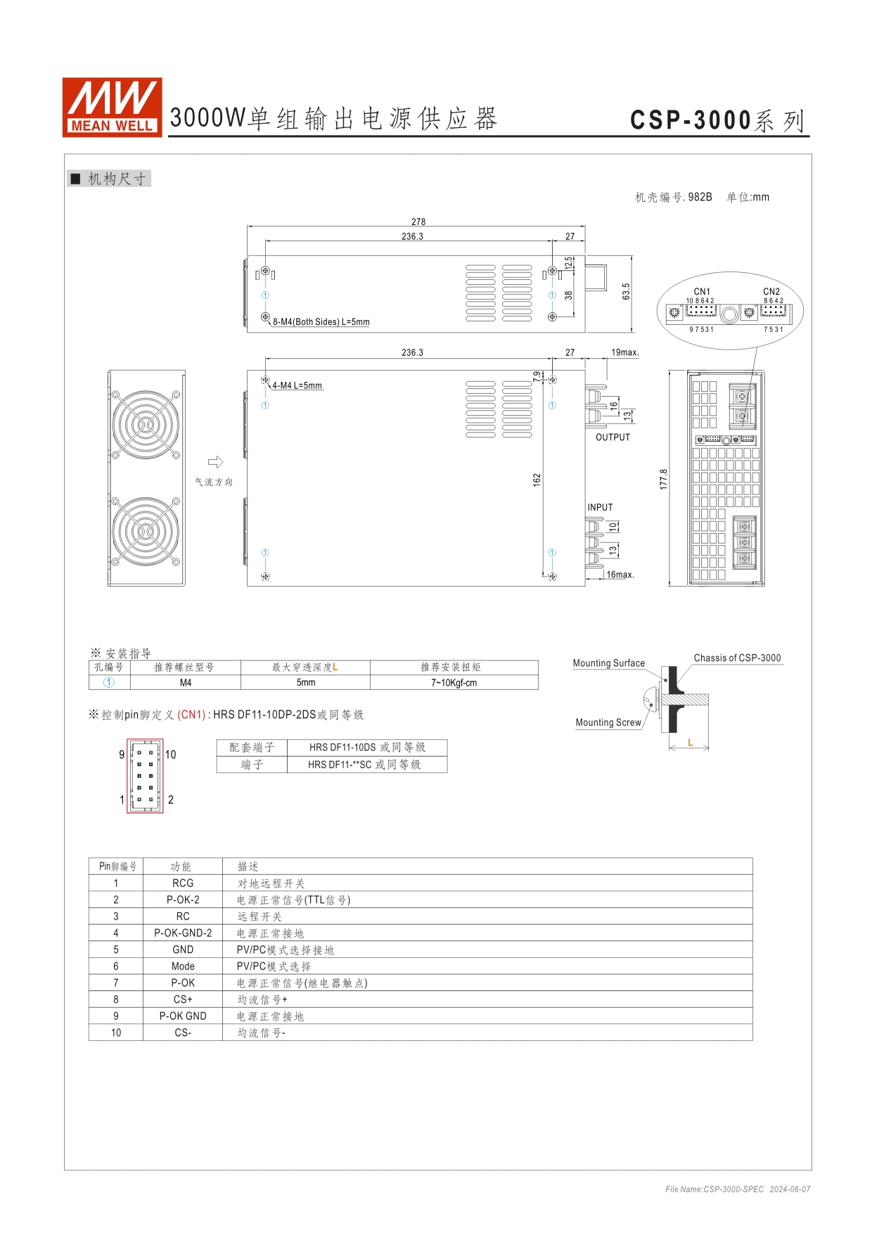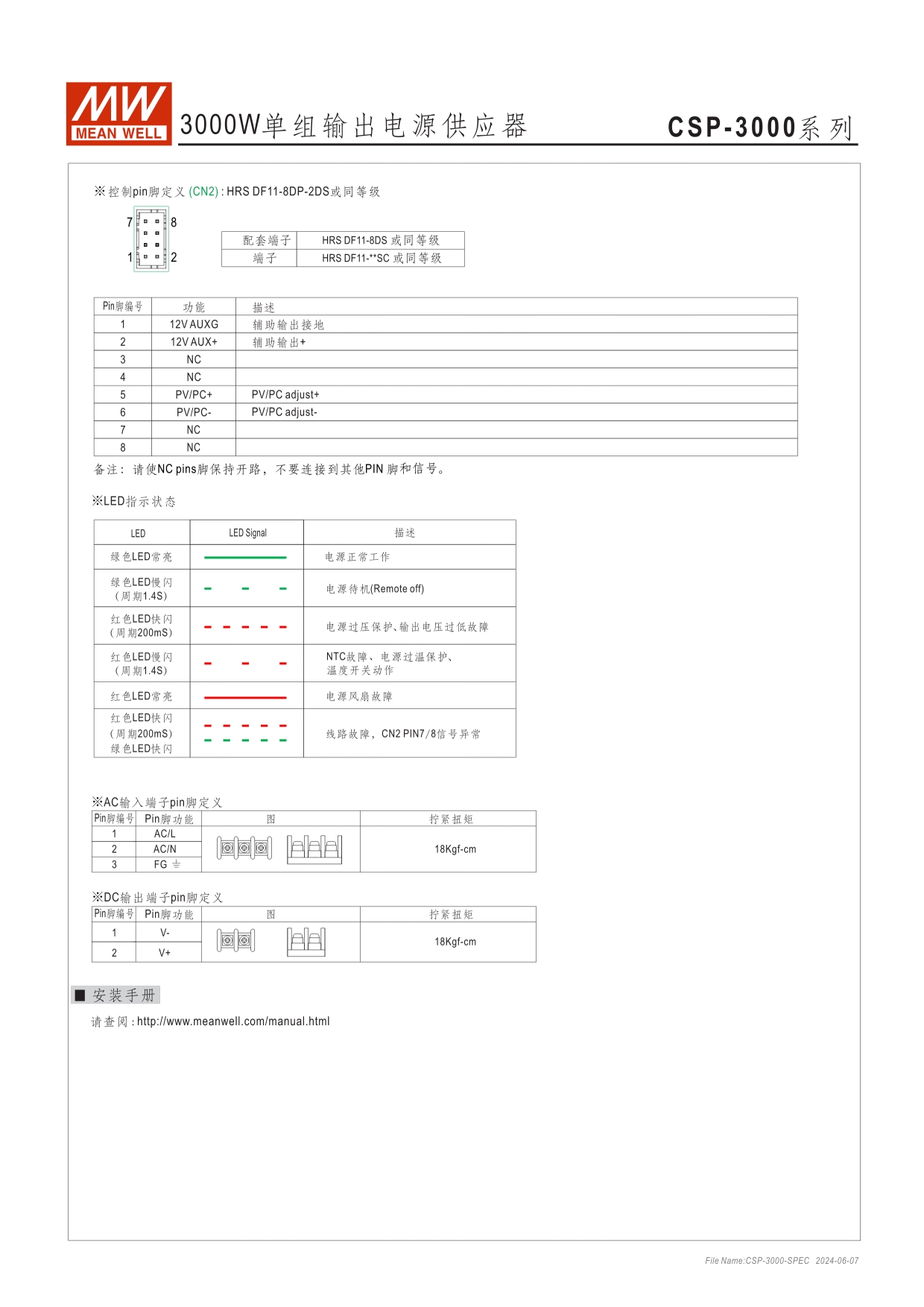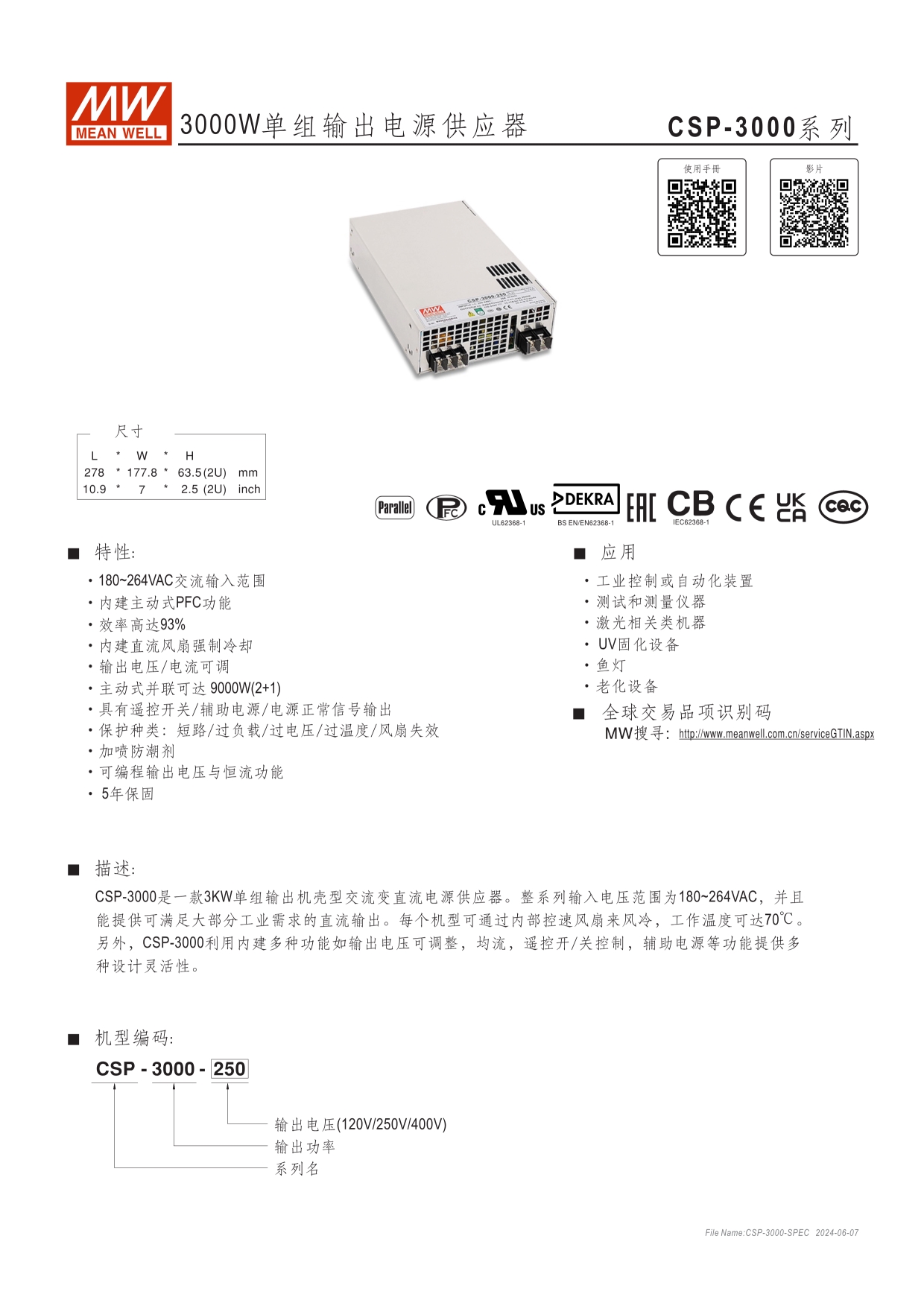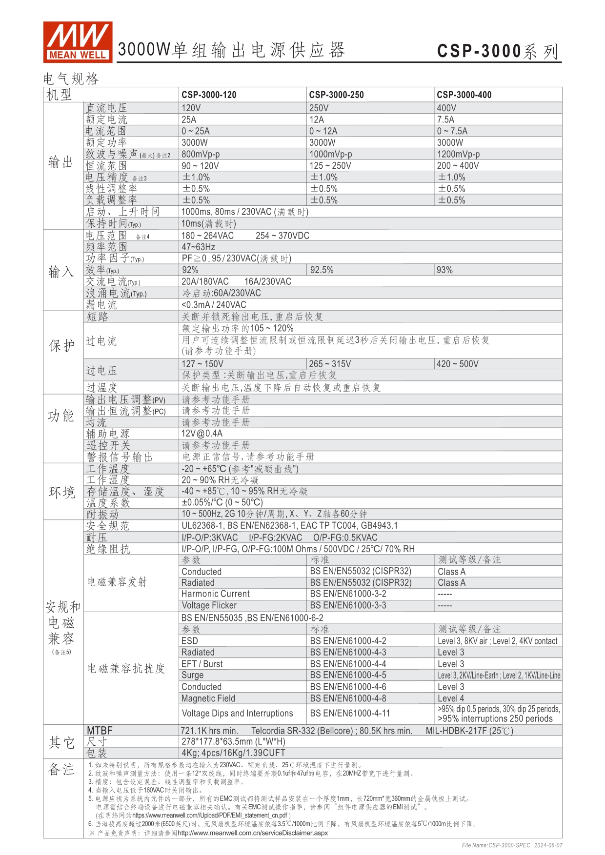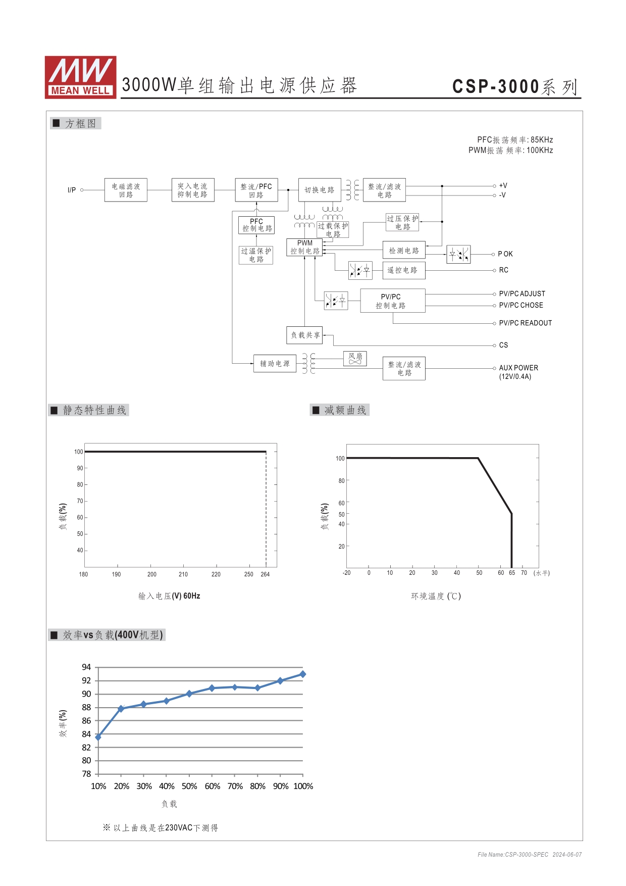 180~264VAC交流輸入 內(nèi)置主動(dòng)式PFC功能 高效率達(dá)93% 內(nèi)建直流風(fēng)扇強(qiáng)制氣冷 可程序化輸出電壓/電流 主動(dòng)式均流設(shè)計(jì)達(dá)9000W(2+1) 內(nèi)建遠(yuǎn)程開關(guān)控制 /輔助電源/輸出OK訊號(hào) 保護(hù)種類:短路、過電流、過電壓、過溫度、風(fēng)扇失效 5年保固