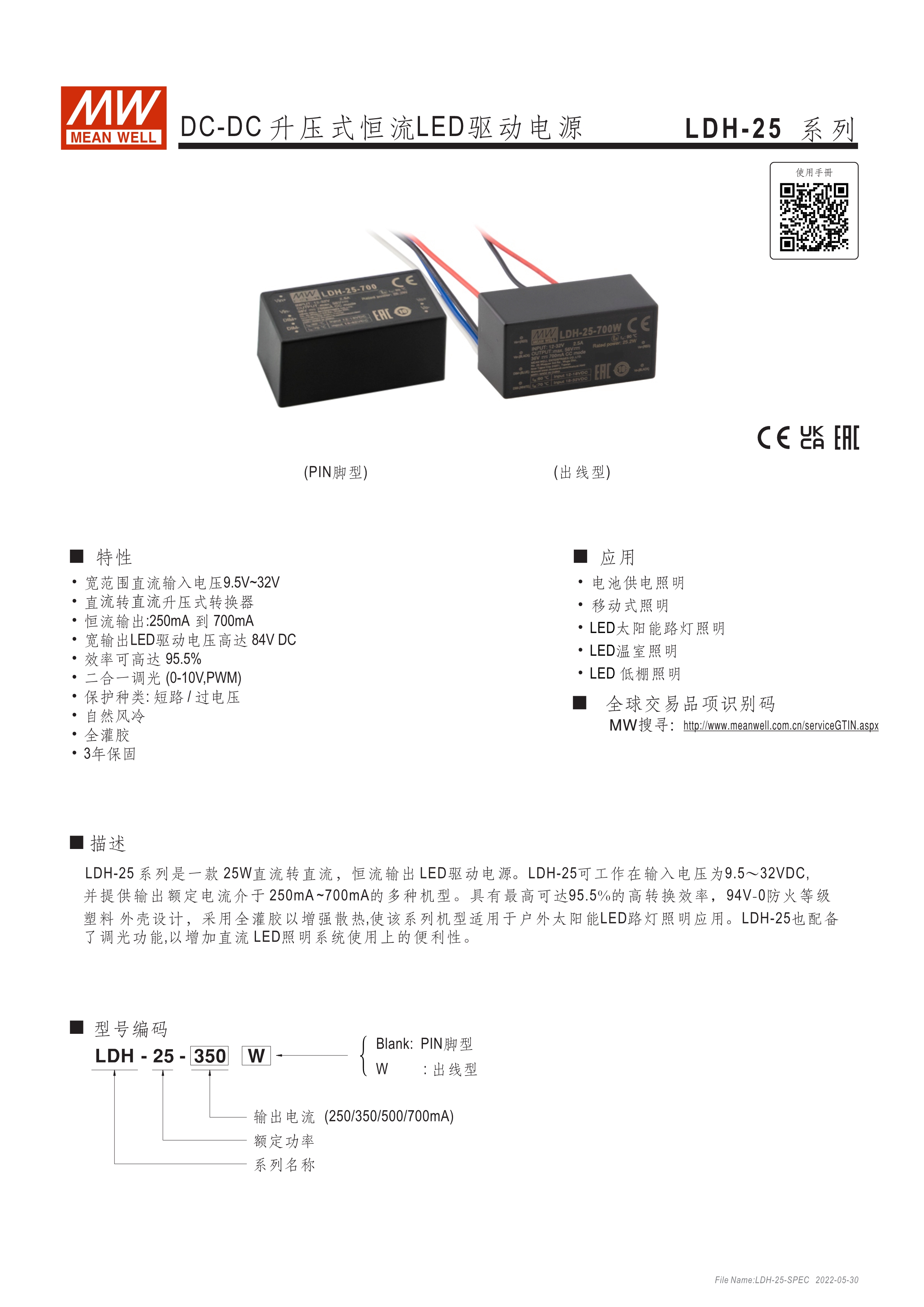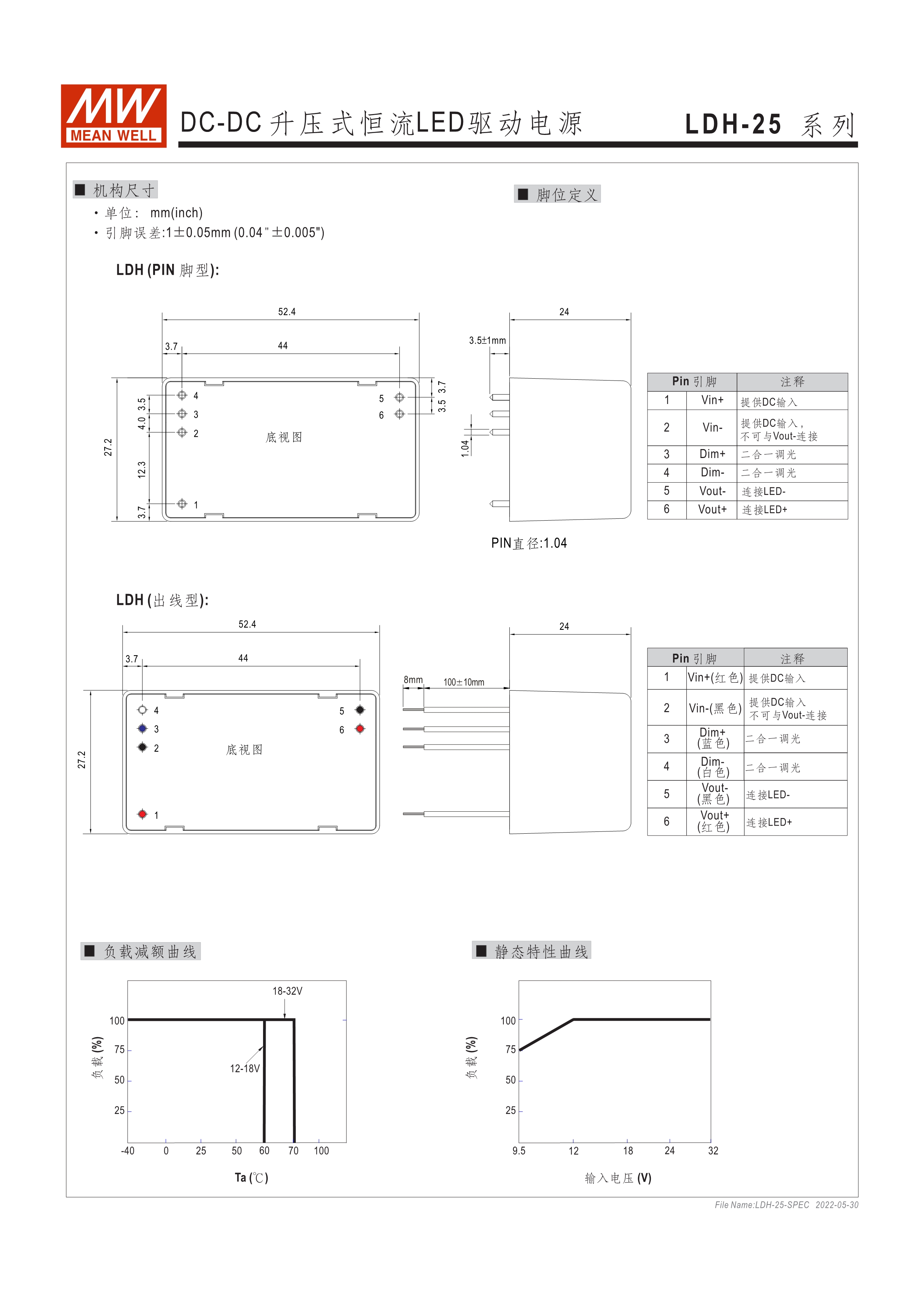 DC/DC升壓式恒流輸出LED驅(qū)動器 95%超高效率 不需外接任何組件即可符合EN55015 內(nèi)建PWM+模擬調(diào)光功能及開/關遙控功能 適合于升壓型照明系統(tǒng)(需插件于PCB母板上) 具備插pin及出線兩種型式