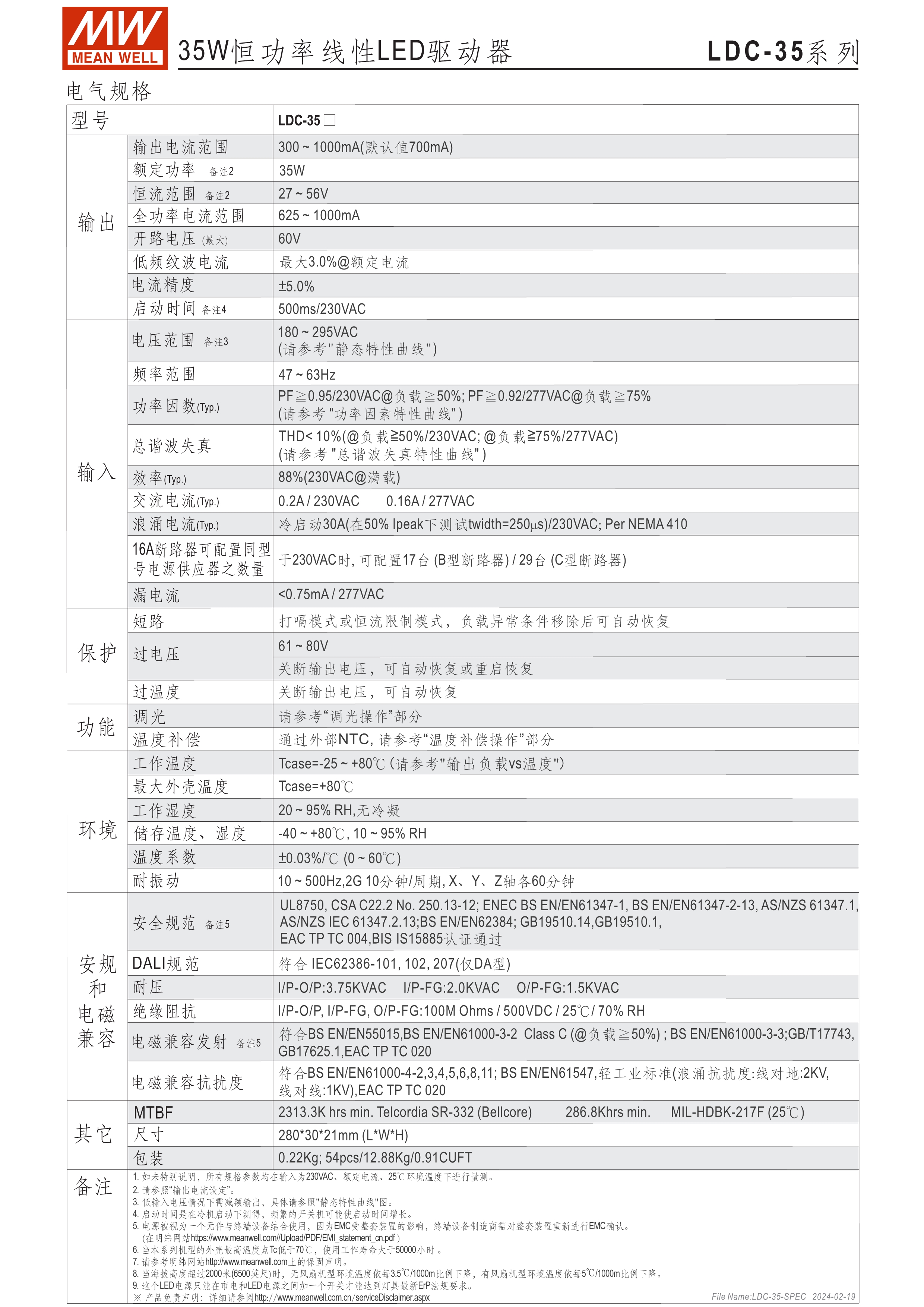 恒功率模式輸出,輸出電流可通過(guò)外接電阻設(shè)定 無(wú)頻閃設(shè)計(jì)(Fpcker free) 三合一調(diào)光功能:0~10Vdc、PMW調(diào)光、電阻調(diào)光 內(nèi)建主動(dòng)式功率因子矯正功能(Active PFC) 低空載功耗: <0.5W 工作溫度: -25~+90℃ 保護(hù)種類:短路 UL/ENEC/TUV/CCC/CB/CE 認(rèn)證齊全 5年保固