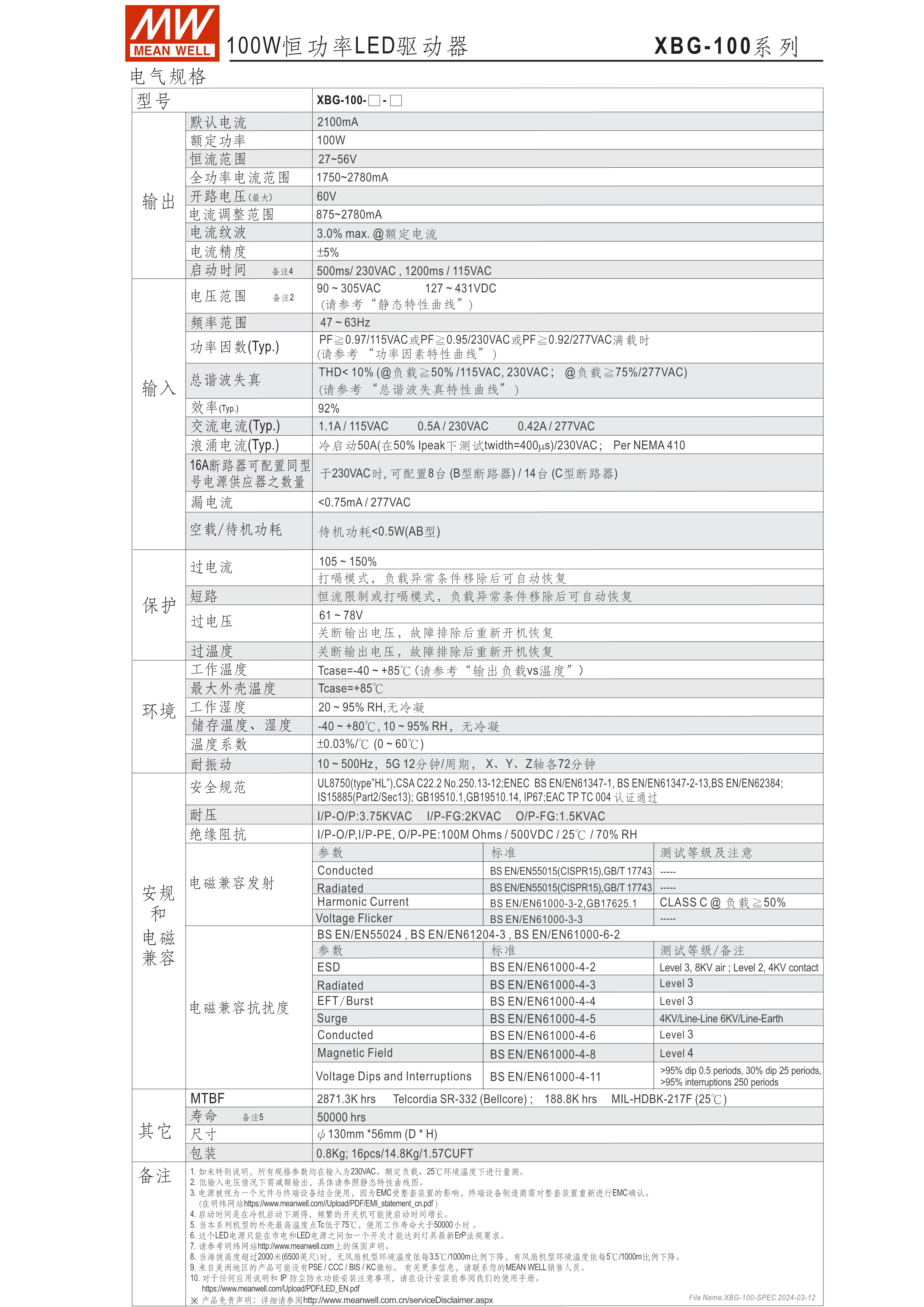 寬電壓范圍100~305VAC交流輸入 主動式PFC及定功率恒流設(shè)計(jì) 輸入線材增加防水接頭方便使用 雷擊保護(hù)設(shè)計(jì):6KV/4KV 保護(hù)種類:短路、過電壓、過溫度 產(chǎn)品壽命>50,000 hrs and 5年保固