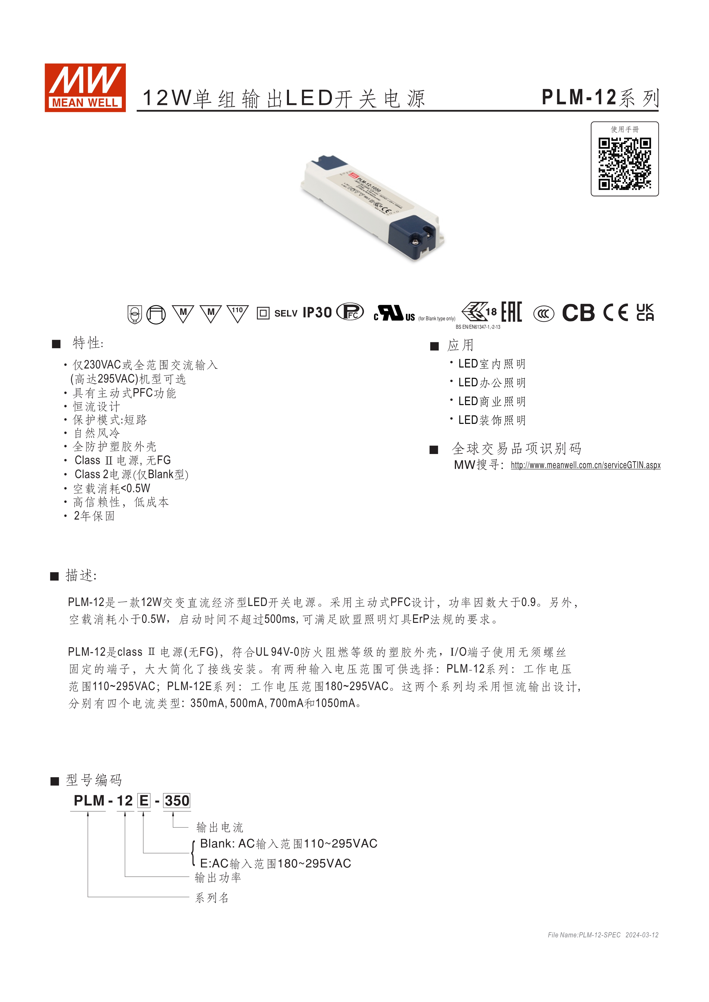 110~295VAC交流輸入 (E型:180~295VAC交流輸入) 內建主動式功率因子矯正功能 (active PFC) 塑料外殼,IP30防護等級 Class II設計,無FG 壓線式輸出/輸入端子臺 恒流設計 空載待機消耗瓦數(shù)<0.5W 適合于LED室內照明相關應用