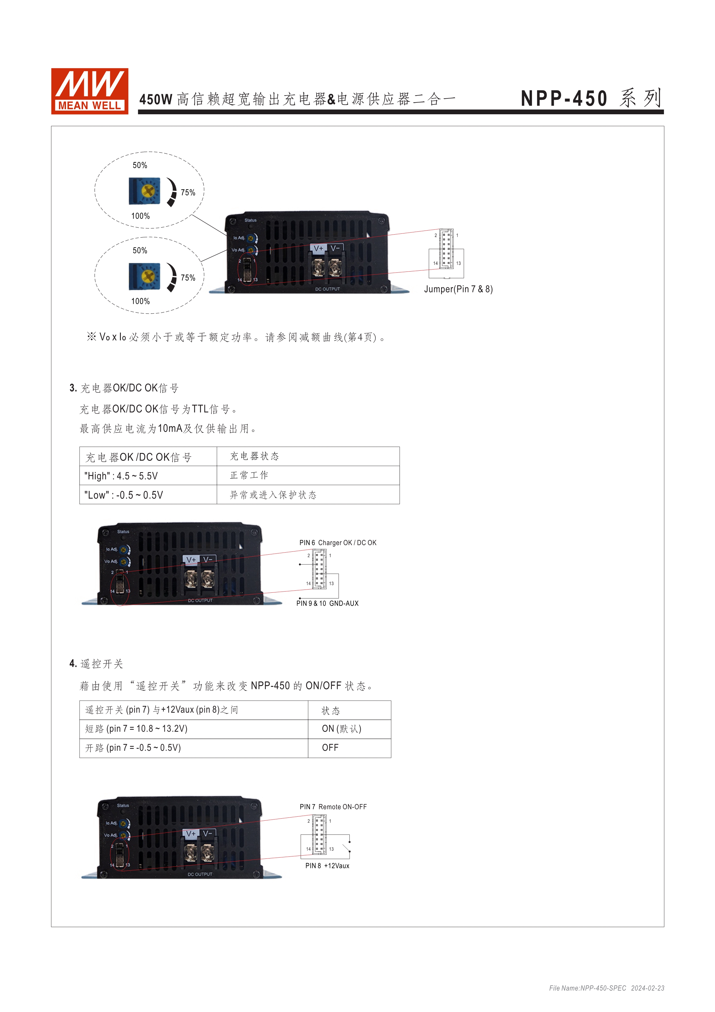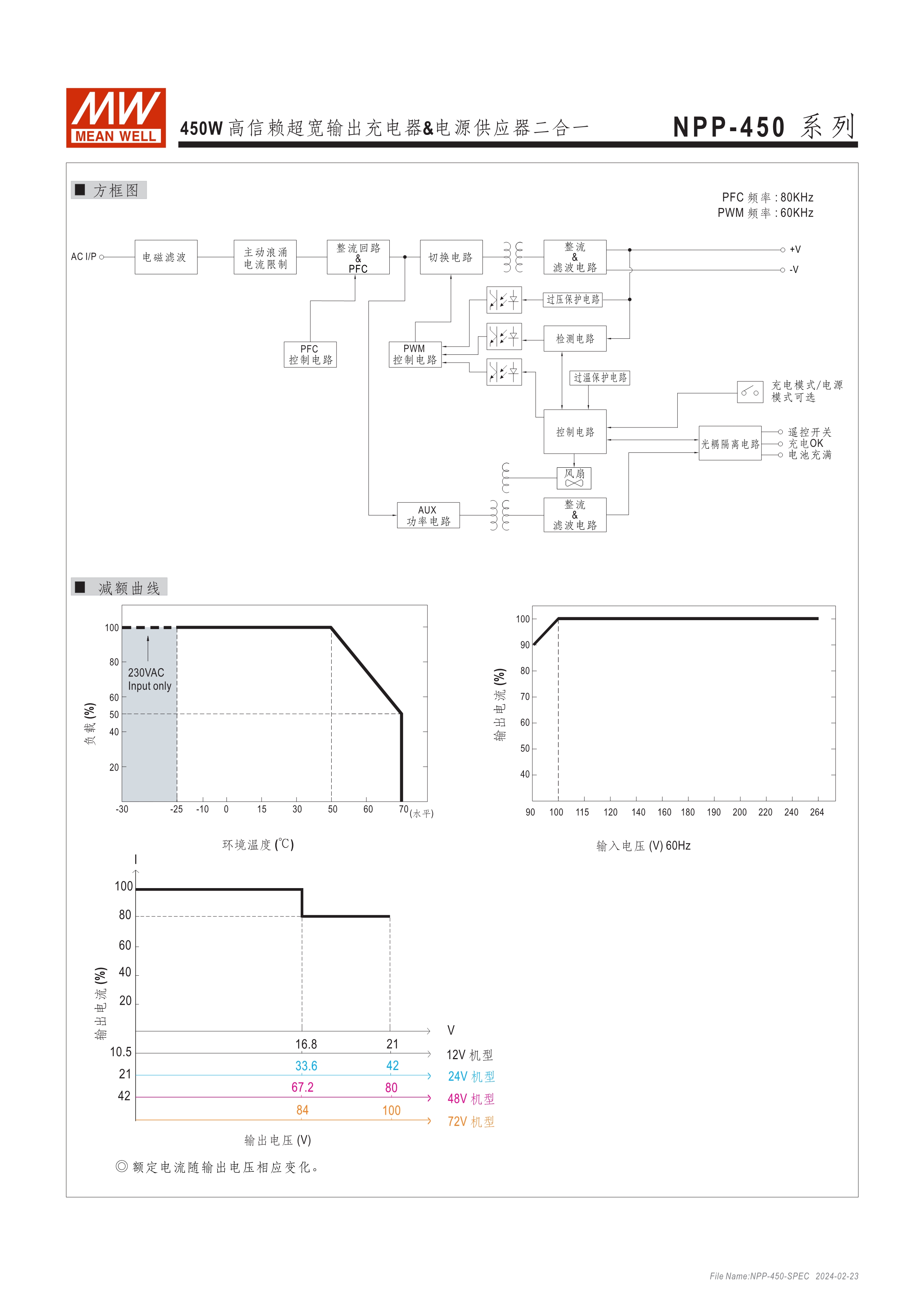 可彈性切換充電器或電源供應(yīng)器 3段式充電,僅適用鉛酸電池 可調(diào)輸出電壓 [由面板VR可調(diào)整10.5~21V, 21~42V, 42~80V, 54~100V(僅NPB-450)] 可調(diào)輸出電流 (由面板VR調(diào)整50~100%) -30~+70oC寬溫度,使用環(huán)境受限少 保護功能:短路、過壓、過溫度 可另購手提把手 (Order No.: Carry Handle) 通過UL/EN62368-1、IEC/EN62368-1/-2-29雙安規(guī)認證 3年保固