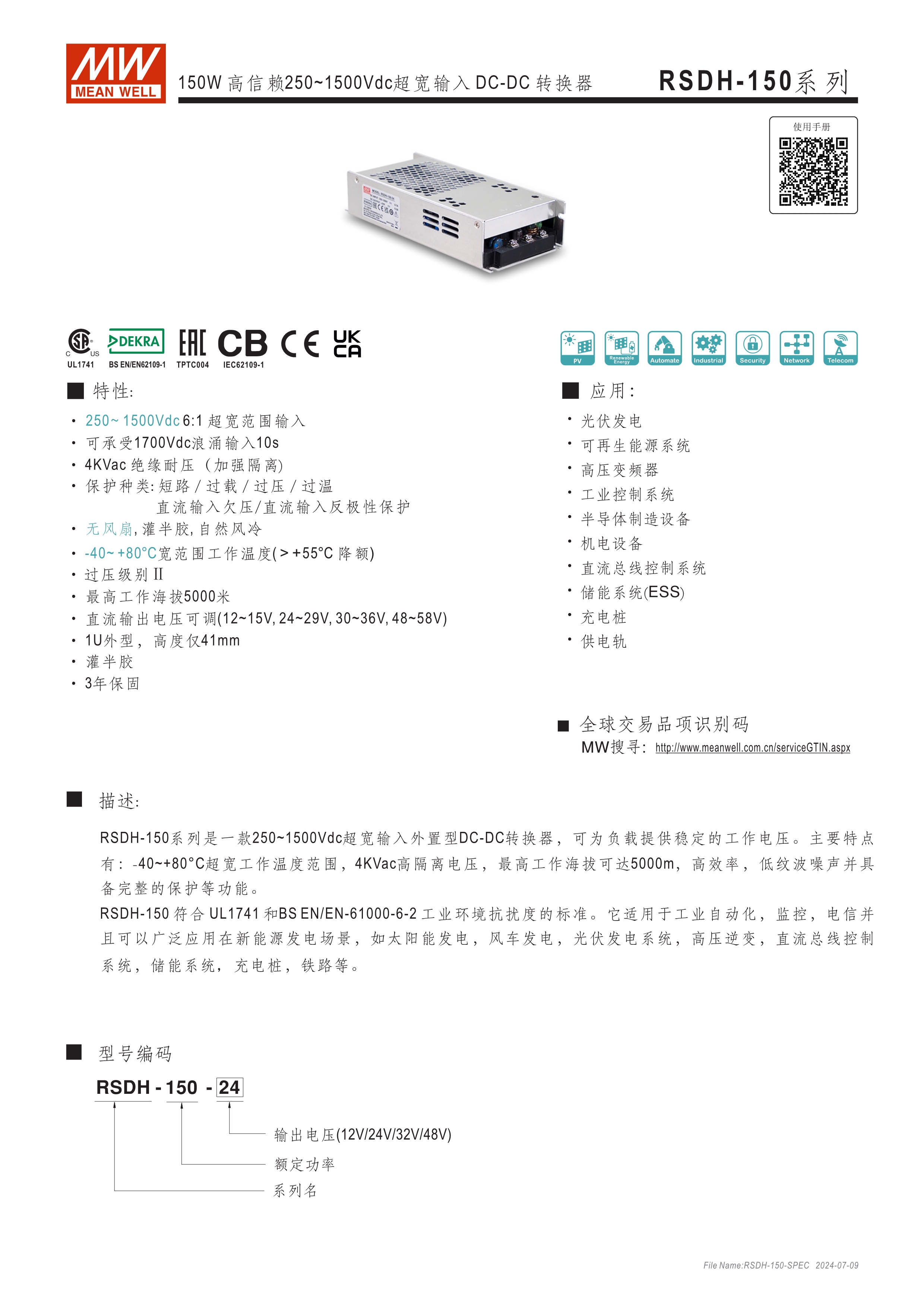 250~ 1500Vdc 6:1超寬輸入范圍 4KVac l/O 高隔離(加強隔離) 無風扇設(shè)計,半灌膠,自然風冷 -40~+80oC 超寬工作溫度( > +55oC降額) 1U 41mm 低高度設(shè)計