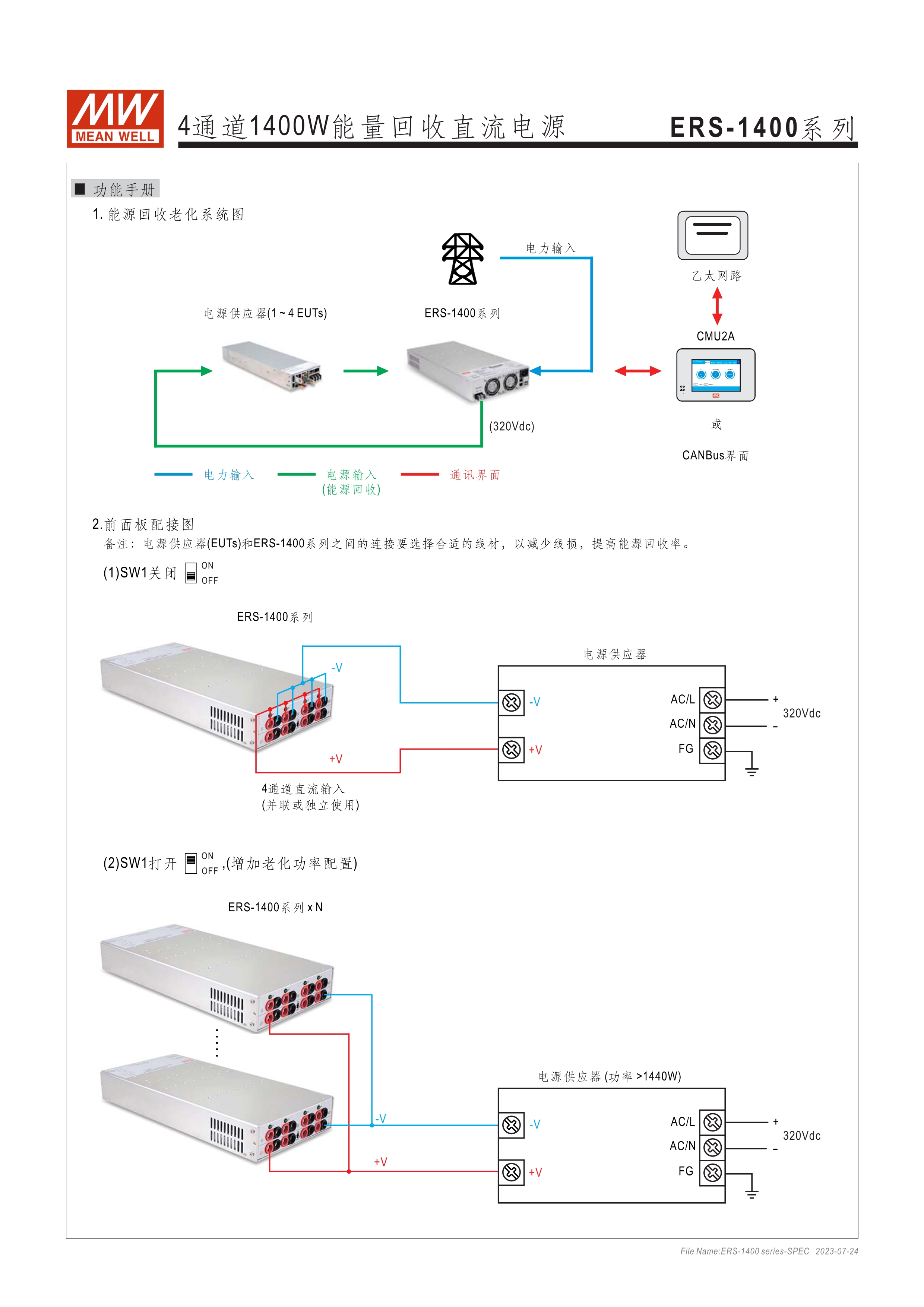 寬輸入電壓范圍10~60VDC/60~380VDC(視機(jī)型而定) 效率高達(dá)91% 靈活配置的模塊化設(shè)計(jì) 彈性的CC/CV/CP操作模式 通過CMU2A實(shí)現(xiàn)CAN總線協(xié)議遠(yuǎn)程控制和監(jiān)控控制 可連接最多64臺ERS-1400系列 保護(hù)功能: 過電壓、欠電壓、過熱、通信錯誤 3年保固期