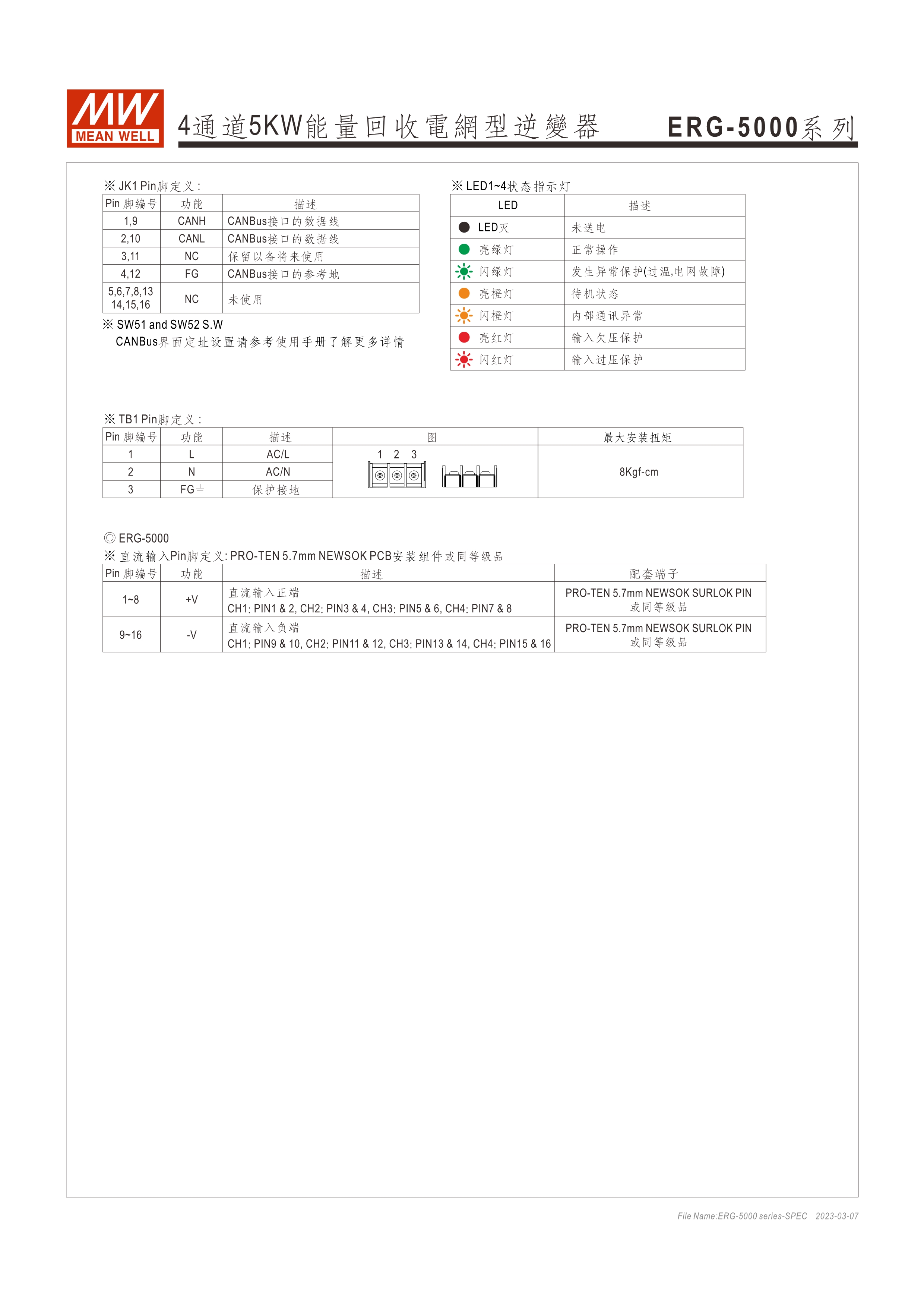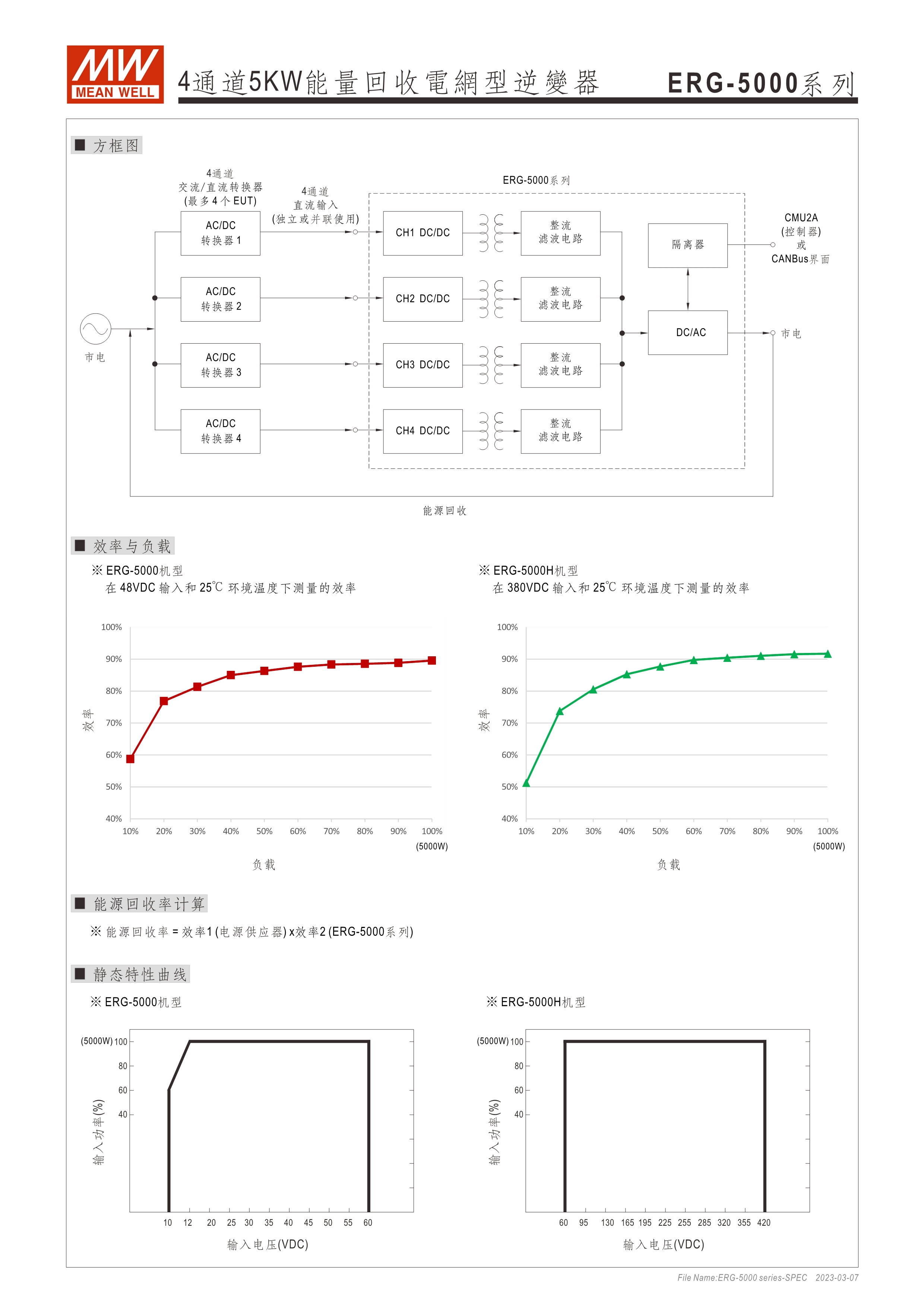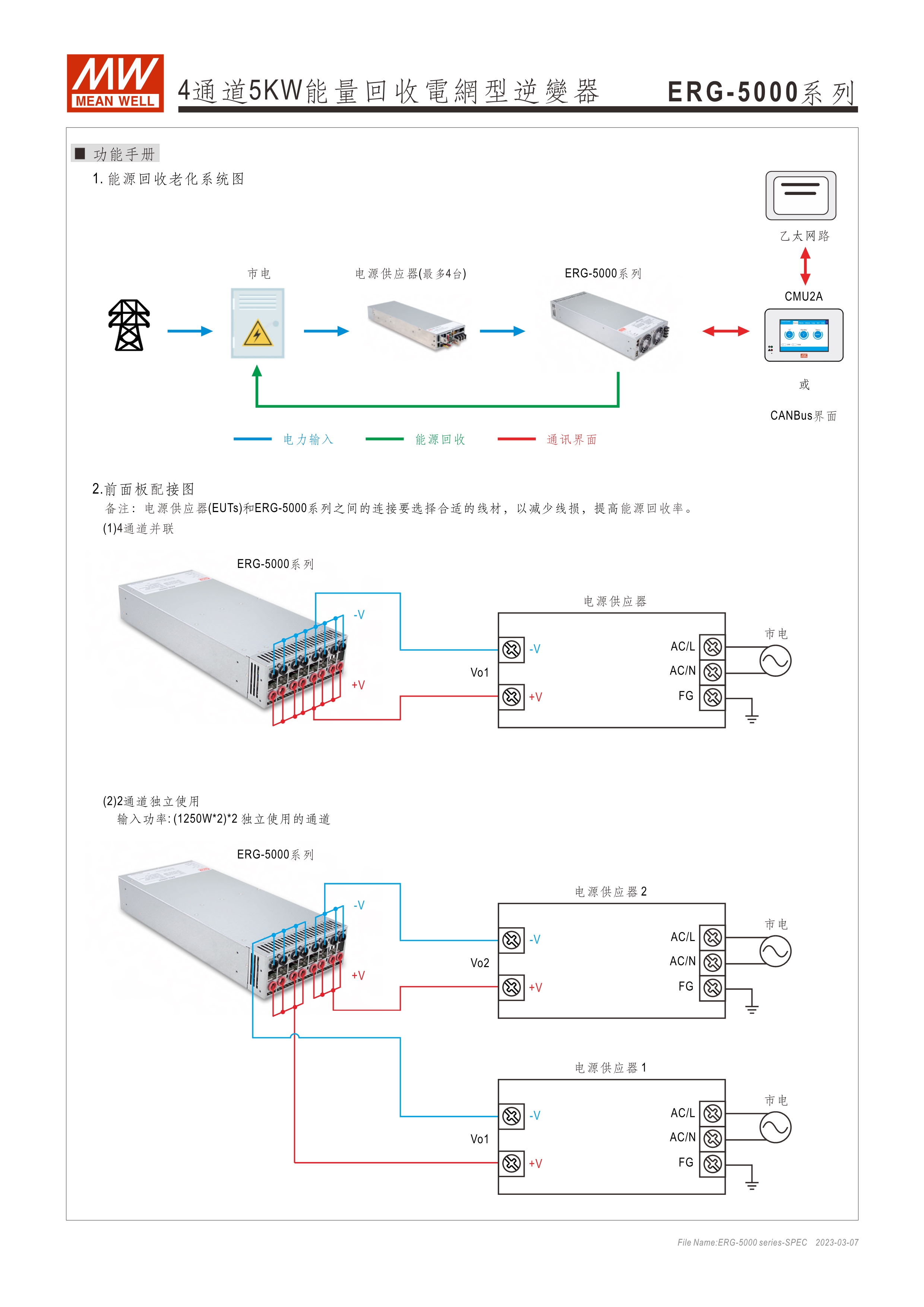 系統(tǒng)電源解決方案 (PDF) 寬輸入電壓范圍10~60VDC/寬輸入電壓范圍60~420VDC 效率高達(dá)91% 靈活配置的模塊化設(shè)計(jì) 彈性的CC/CV操作模式 通過(guò)CMU2A實(shí)現(xiàn)CAN總線(xiàn)協(xié)議遠(yuǎn)程控制和監(jiān)控控制 可連接最多64個(gè)ERG-5000系列 保護(hù)功能:過(guò)電壓、欠電壓、過(guò)熱、過(guò)功率、電網(wǎng)故障、過(guò)功率無(wú)輸入、通信錯(cuò)誤 3年保固